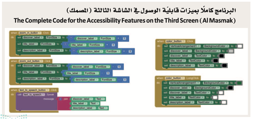 بإمكانك مراجعة محتوى موضوع “ميزات قابلية الوصول في التطبيق” بدايةً من عنوان “إضافة زر تحويل النص إلى كلام في التطبيق” وحتى هذه النقطة، من خلال الرابط التالي: