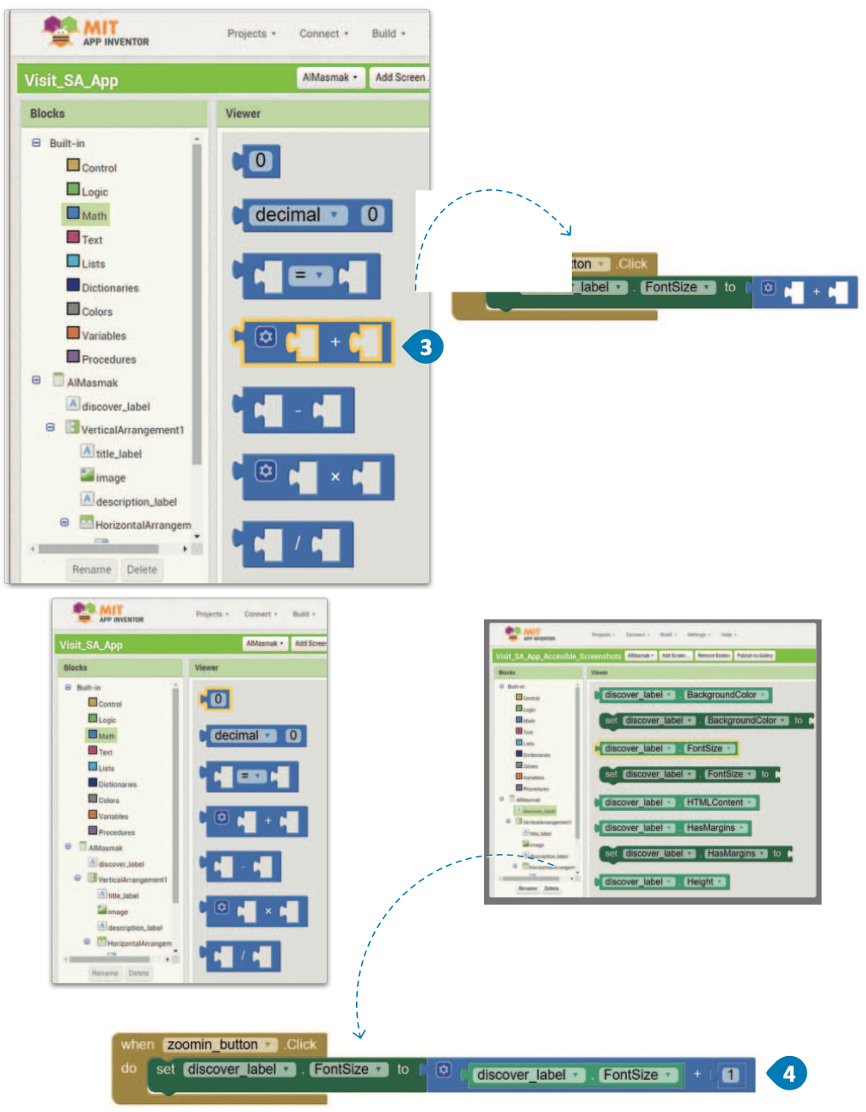 - كرِّر نفس العملية السابقة لمُكوِّن zoomin_button (زرّ_التكبير)، وغيِّر العملية الحسابية فقط من addition(الجمع) إلى subtraction (الطرح).
