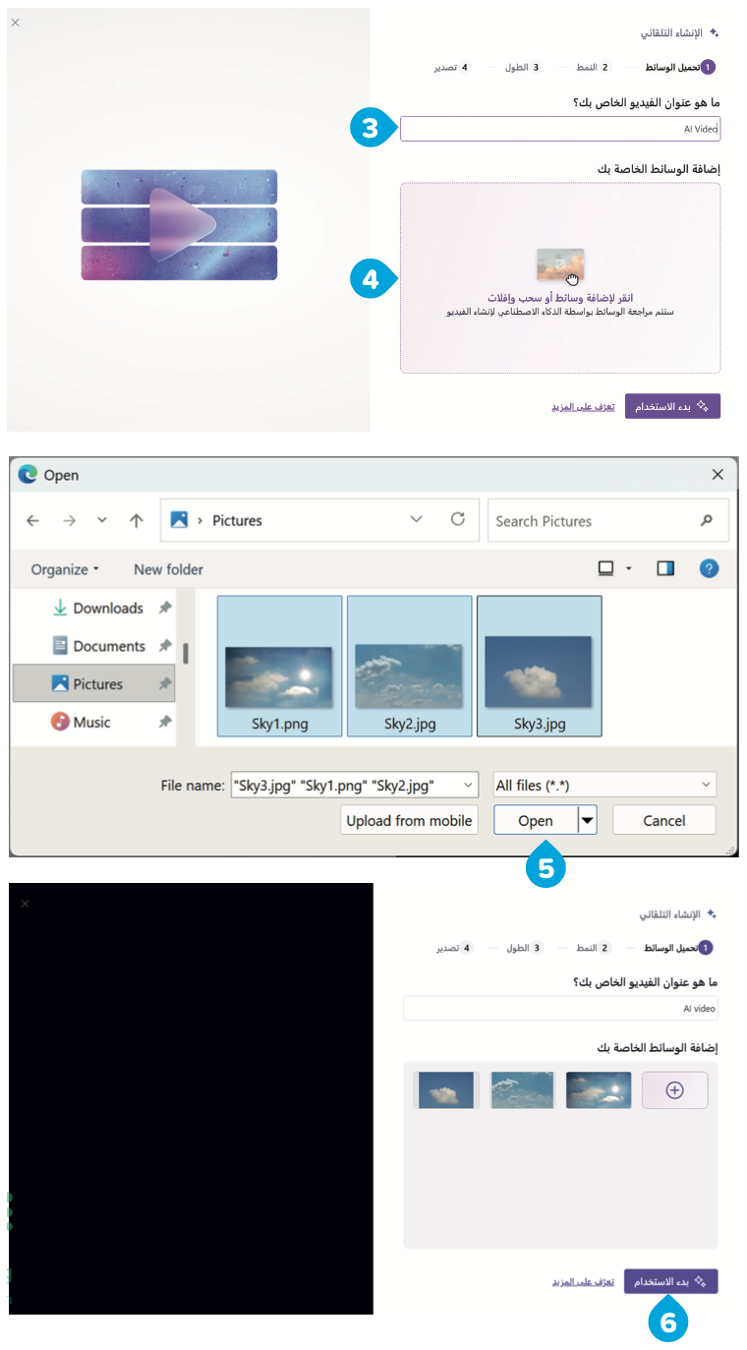 إنشاء مقطع فيديو باستخدام الذكاء الاصطناعي.