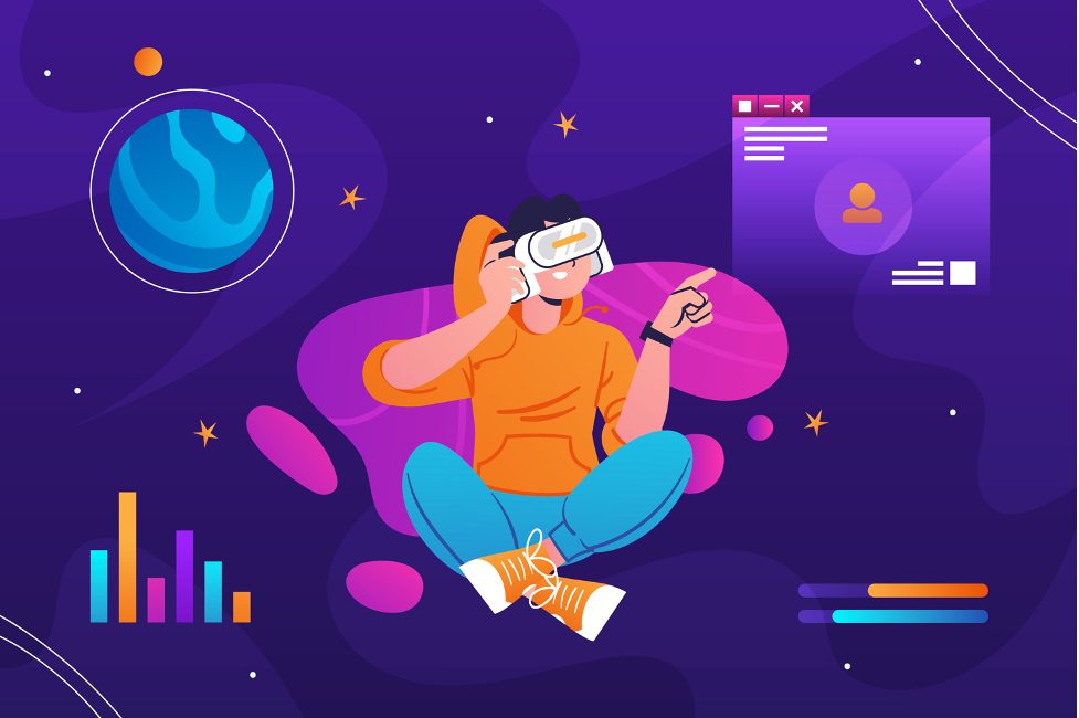 • هل سبق لك ارتداء نظارات خاصة للعب لعبة تشعر فيها وكأنك في عالم آخر؟ هذا ما يُسمّى بالواقع الافتراضي.