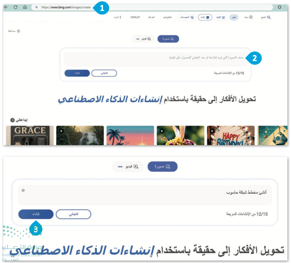 • استكشاف الإبداع باستخدام الذكاء الاصطناعي من خلال إنشاء صور أصلية باستخدام مُنشئ صور بينج (Bing Image Creator).
