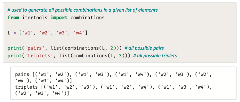 ستقوم أول خوارزمية بتطبيق حل أسلوب القوة المُفرطة الذي يعتمد على التعداد الشامل لكل الفِرق المُمكِنة وأخذها بعين الاعتبار، وستَستخدِم هذه الخوارزمية أدوات combinations (توافيق) من وحدة itertools؛ لتوليد كل الفِرق المُمكِنة ذات العدد المحدَّد.